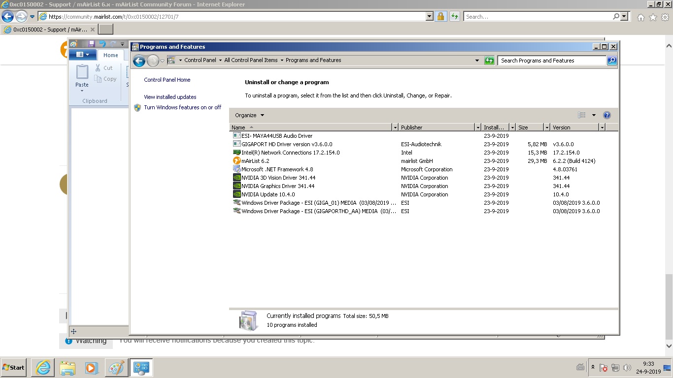 When I start the Mairlist i get The application was unable to start correctly (0xc0150002)