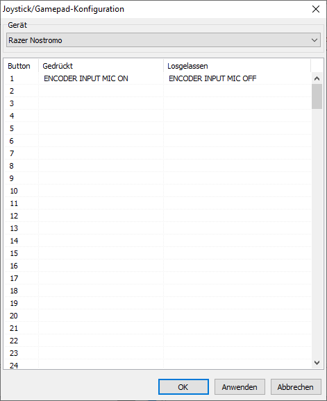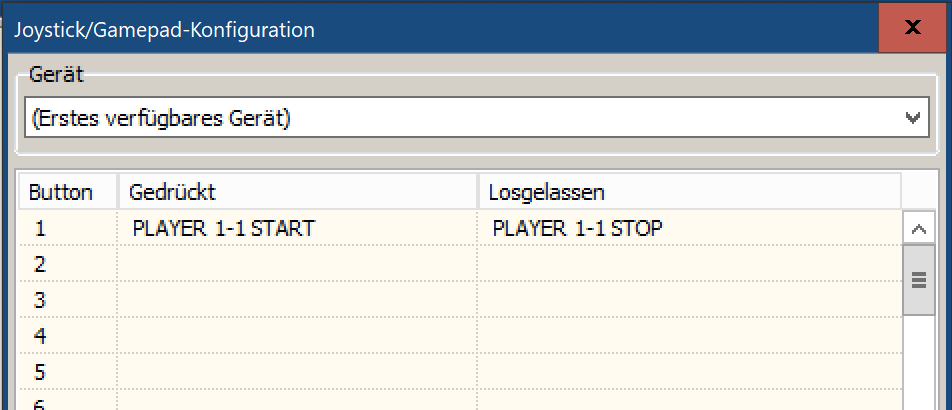 Du kannst in der Konfiguration Deines Game-Controllers einstellen, welchen Befehl mAirList beim Drücken der Taste bekommen soll und welchen beim Loslassen.