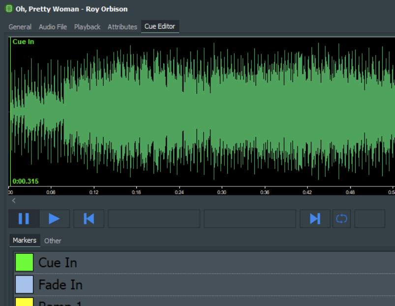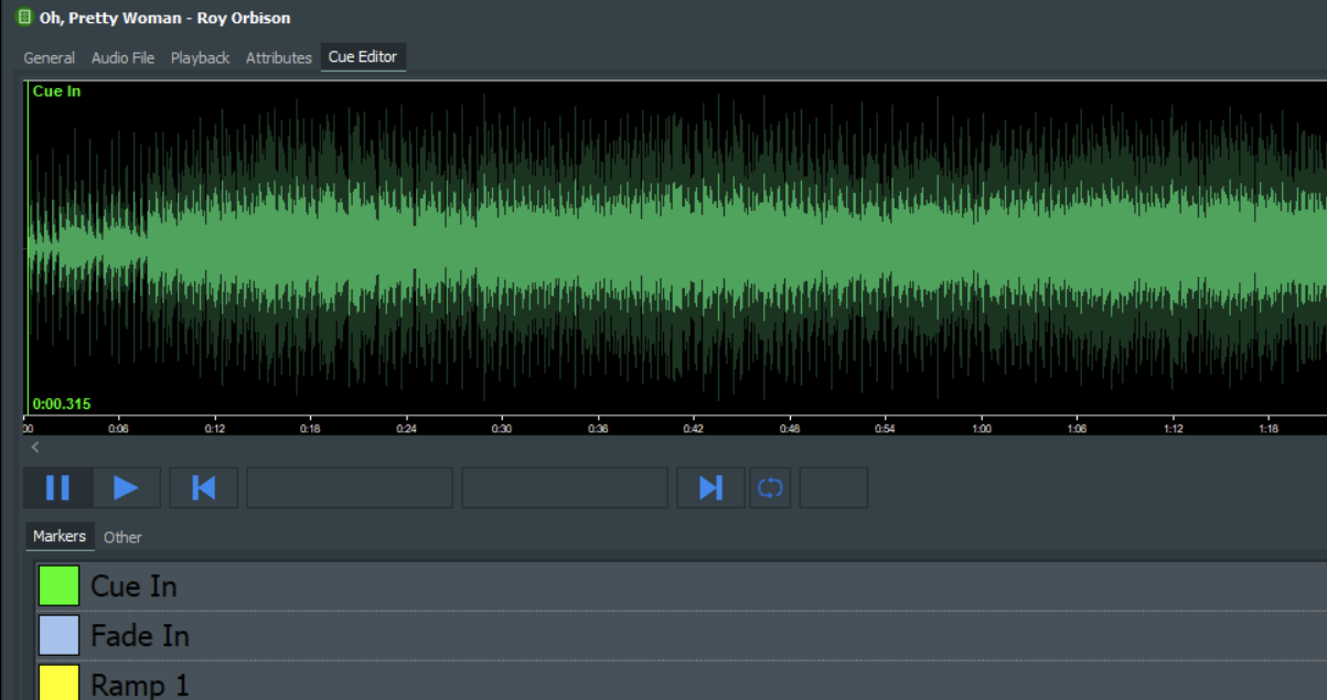 If I manually change the value back to 0 dB, the song plays at a normal volume again. After making this adjustment, the volume is correct and the curve in the “Cue Editor” turns light green, as expected.