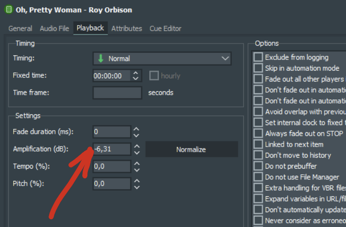 When I drop a song into mAirList queue, about 50% of the tracks play at a normal volume, but the other 50% are noticeably lower in volume.