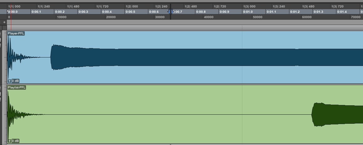 Bilder sagen ja oft mehr als Worte. Deshalb zeige ich die unterschiedliche Verzögerung der PFL-Player hier im direkten Vergleich (am Anfang sieht man jeweils den Tastendruck, früher oder später startet dann der Ton)