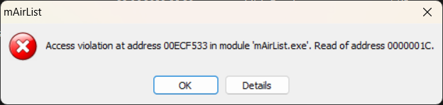 Irritiert mich aber, denn ich habe für diesen Rechner extra eine neue Config angelegt statt die andere zu importieren. Aber irgendwas stimmt trotzdem nicht. Ich hatte auch nach dem zurückbenennen in config und dem neuen Start von mAirlist direkt eine Access Violation.