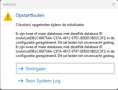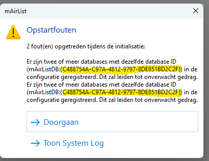 It’s not logically but mAirList “sees” the other dB no matter if you deactivate the database. You need to a) delete it from the config or b) let mAirList re-set the ID.