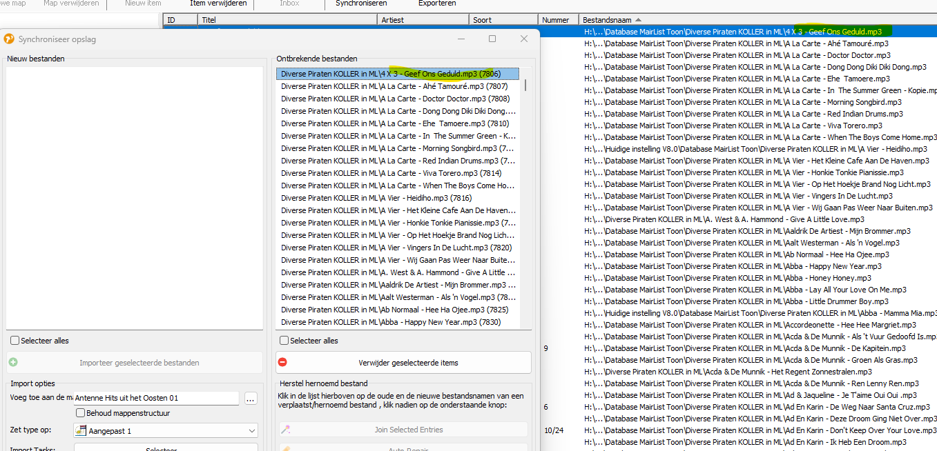 The files: If you have imported the files into the “storage locations” just change the targeting path to/for the main folder (C:\Music to H:\Music). The location in the mAIrList-database is saved in a relative path, not absolute.