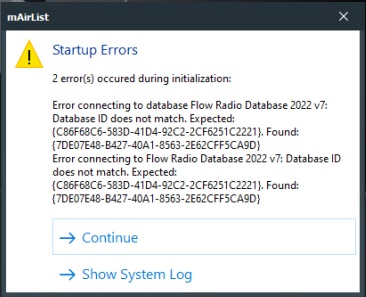 It’s strange since I only get this message when starting the mAirlist software. I don’t get this message when starting the Database nor the DBserver app.