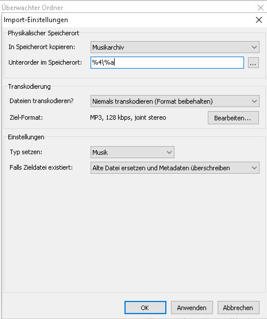 Nun gibt es das schöne Feature des Auto-Importers, der einen Eingangs-Ordner überwacht und neue Dateien automatisch in die Datenbank aufnimmt und auch physisch in einen neuen Speicherort verschiebt. In den Import-Einstellungen lassen sich im Feld “Unterordner” sämtliche Logging-Variablen angeben ( reference:logging_variables [mAirList Wiki] ), sodass der Importer automatisch die nach den Variablen gewünschten physischen Ordner im Speicherort anlegt. In meinem Fall werden die Dateien dann sauber in meiner bestehenden phsyischen Dateistruktur abgelegt. Perfekt!