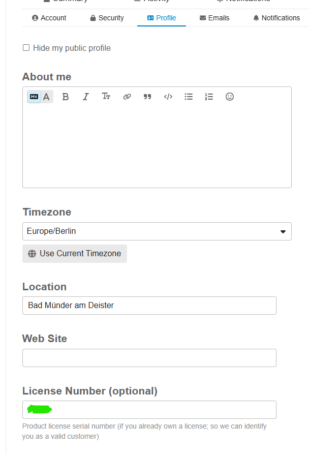 Hi, would you be so kind to enter your license number in the profile so we can verify you as a paying customer? It’s not viewable for other users, only for staff.