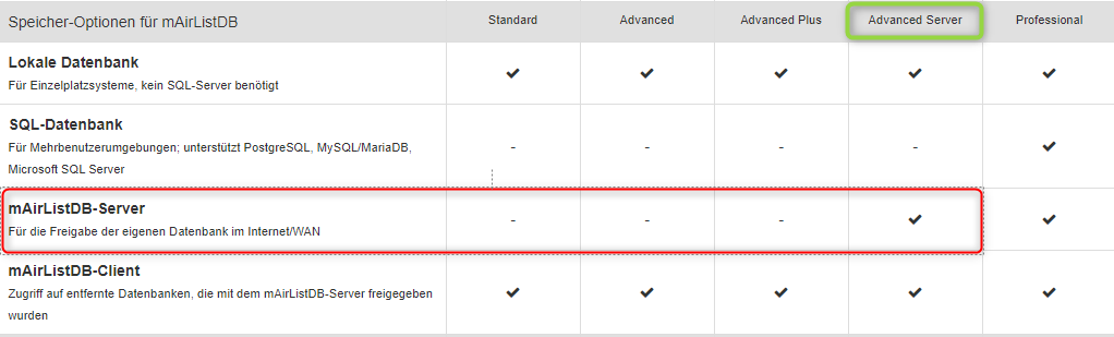 Damit kannst du dann von einem entfernten Studio (bspw. Homestudio) und (fast?) jeder mAirList Version auf die Datenbank des Servers zugreifen.