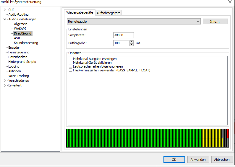 dürfen auf dem Server keinerlei RemoteAudio aktiviert werden innerhalb von mAirList.