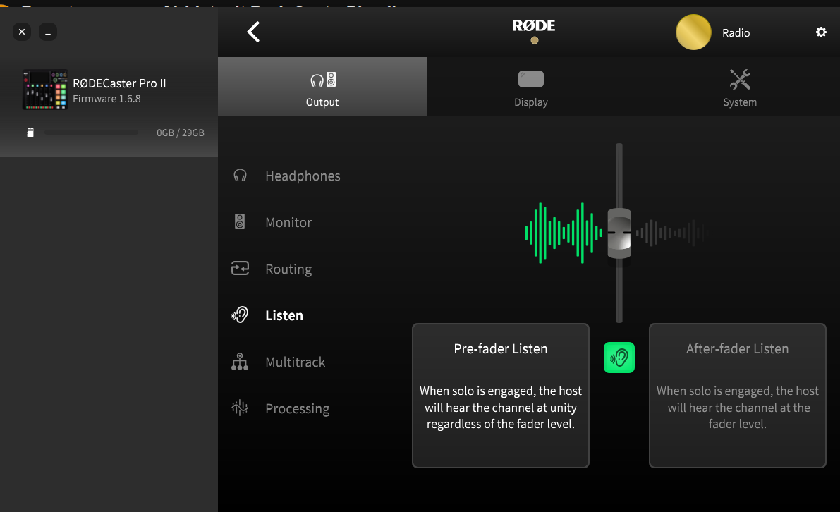 Vorher habe ich mit RadioBoss und dem Rode Caster Plus II gearbeitet