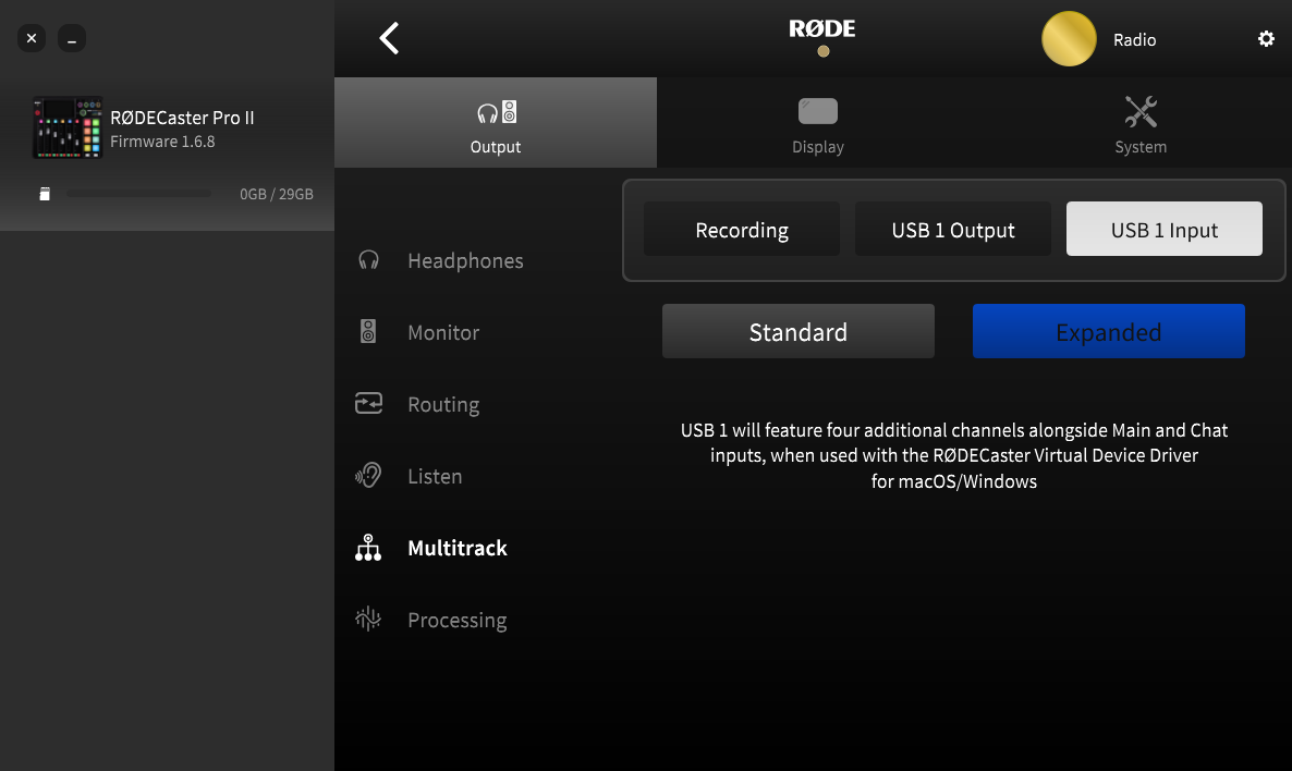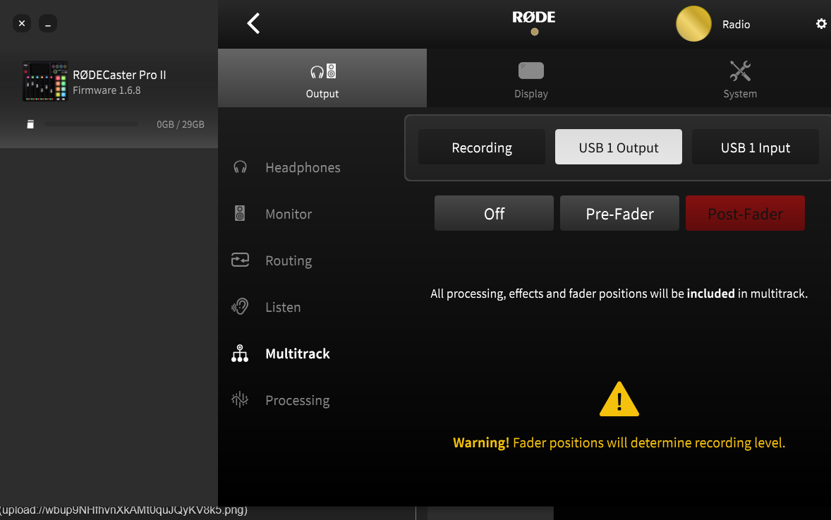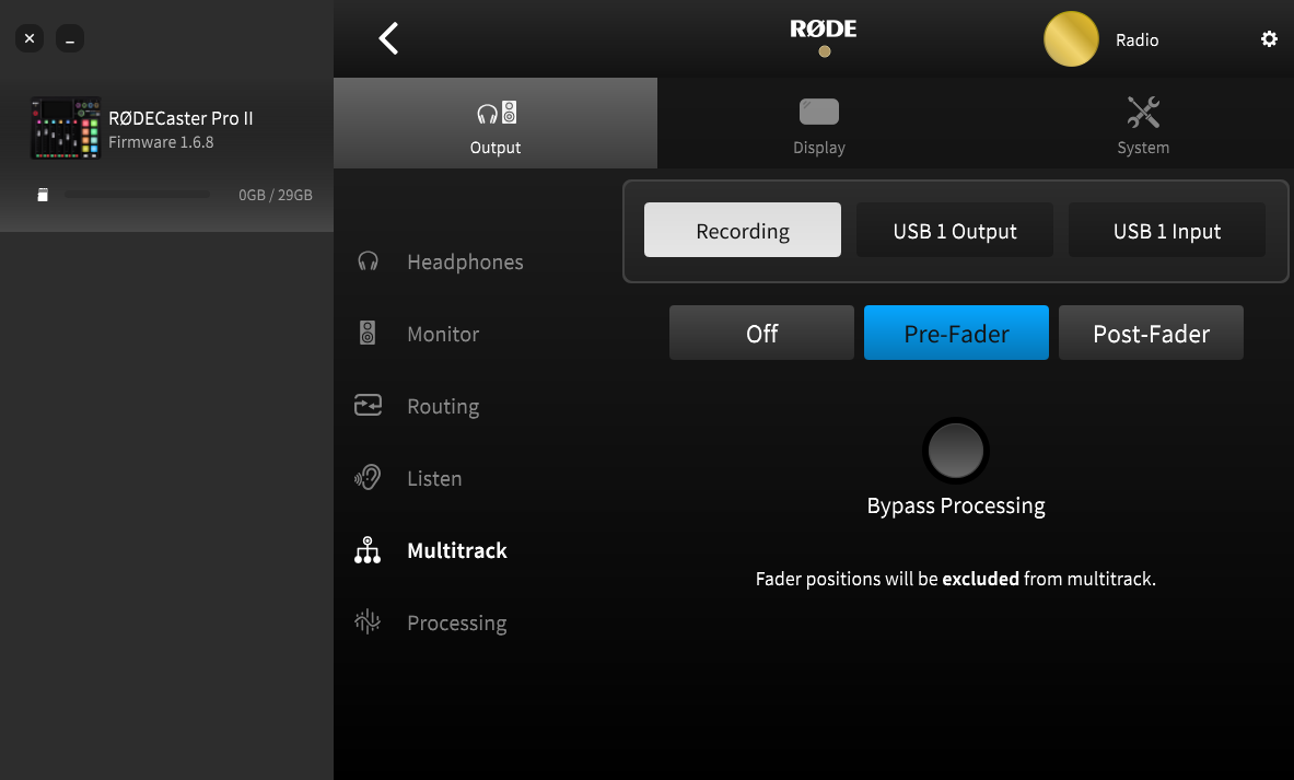 Siehe mein Beitrag. Habe alles unter “Multitrack” vom Rodecaster reingestellt.