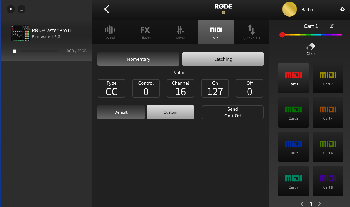 Im Moment werde ich die Variante MIDI Steuerung bevorzugen, da ich mich noch zu wenig mit dem RodeCaster und mAirList auskenne, in einen zweiten Schritt wäre eine Umstellung als vollwertiges Mischpult anzustreben.