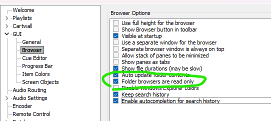 Option Folder browsers are read only is checked
