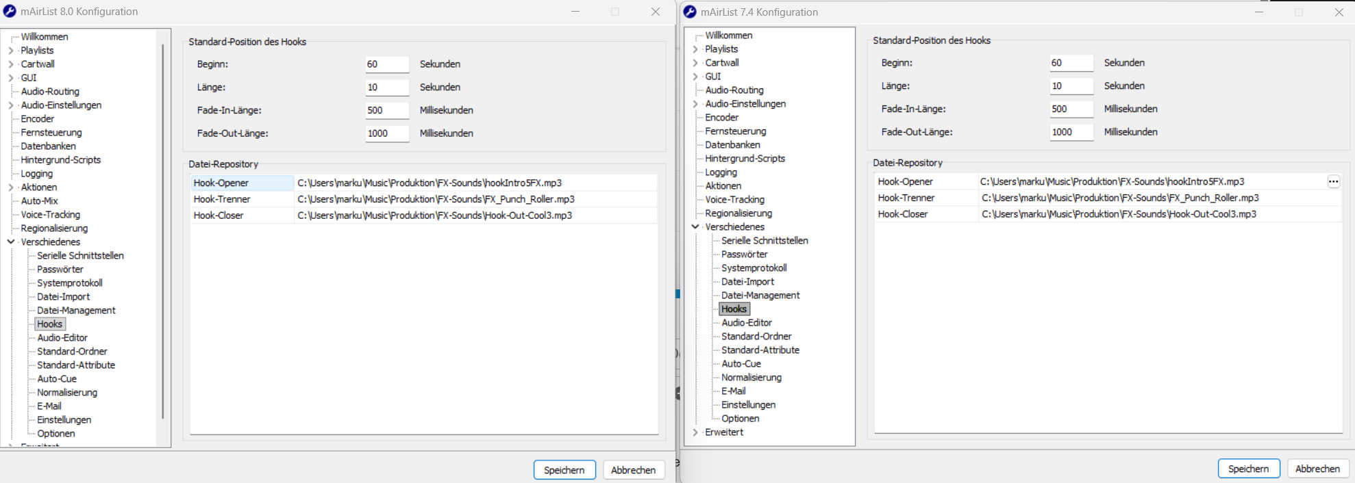 im Hook wird der erste Song durch den Hook Opener überlagert. Soll heißen das hinterlegte Hookintro läuft gleichzeitig mit dem ersten Song. Ab den zweiten Song passt es.