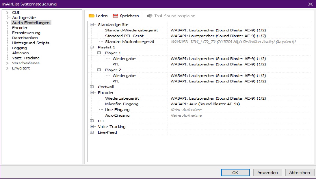 Alle Devices sind angepasst an die Konfig des Rechners, die vorher auch schon im Betrieb waren. Die Player funktionieren auch der Outplay funktioniert auch der Auschlag im Lautsträrkemixer von Windows wird angezeigt aber zu hören ist kein Ton mehr von keiner Software auch nicht von RadioBoss. So lange mairlist nicht gestartet ist funktionieren alle Software die sound produzieren bzw. senden.