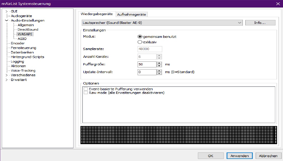 Klar: Audiogeräte muss man anpassen, das verstehe ich. Alle Devices über WASAPI, richtig?