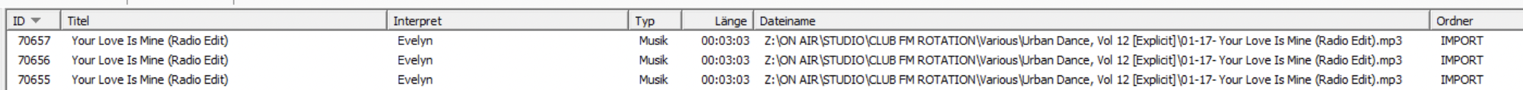 mir ist gerade etwas ziemlich seltsames passiert: Beim Importieren einiger neuer Soundfiles über die “Synchronisieren” Funktion wurde plötzlich eine uralte Bestandsdatei als neu erkannt und dementsprechend erneut eingelesen. An der besagten Datei wurde nichts verändert. Bei jeder Synchronisierung wird diese Datei jetzt als neu erkannt und kann somit mehrfach in die Datenbank importiert werden:
