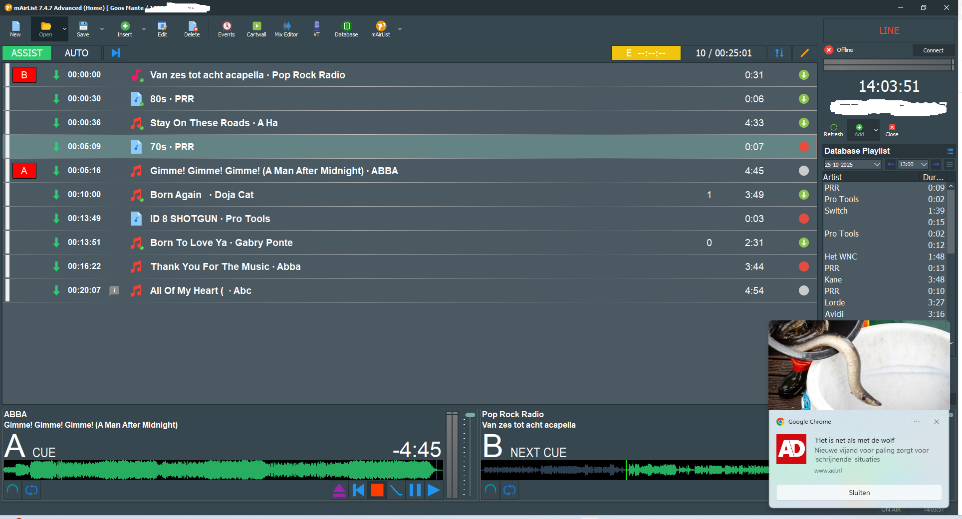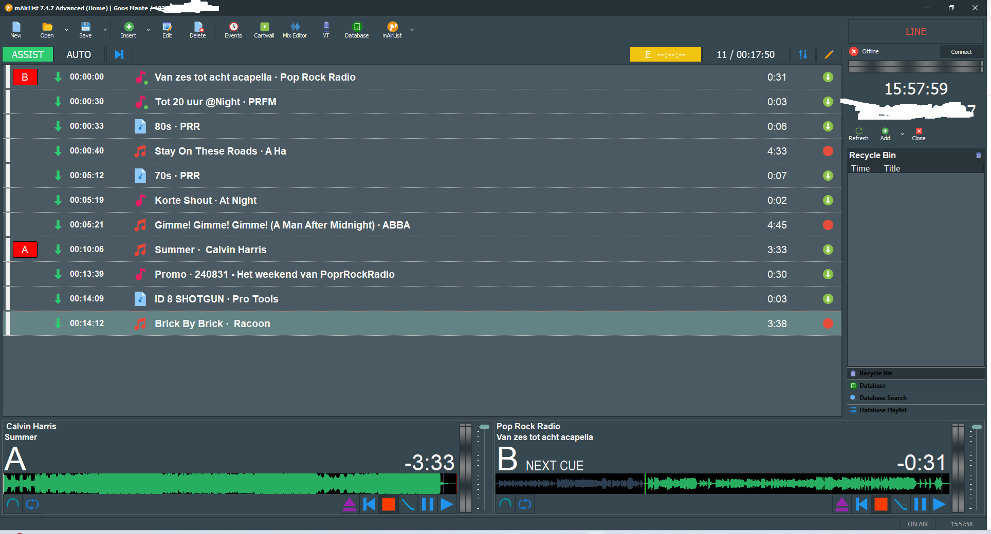 In principle, itâs always in assist mode. I manually compile the list for the live hours; I find it easier than the mini-scheduler. This also happens. I just tested it again when you add the records to the playlist. This is just an example of what Iâm sending now.