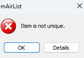 “Item is not unique”