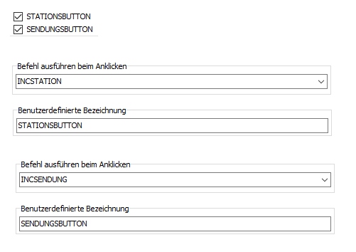 Voraussetzung sind zwei Statischer-Text-GUI-Elemente namens STATIONSBUTTON und SENDUNGSBUTTON, die beim Betätigen die Befehle INCSTATION bzw. INCSENDUNG von sich geben.