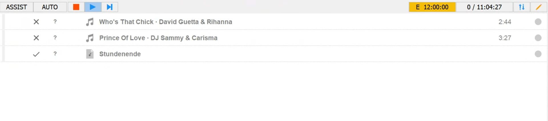 Danke für die Tipps, leider haben die jedoch nicht den gewünschten Erfolg gebracht. Eben zur vollen Stunden wurde einfach die Ausspielung beendet und es erscheinen ausgegraut 2 überplante Titel und danach “Stundenende”, wie im Screenshot oben :-/