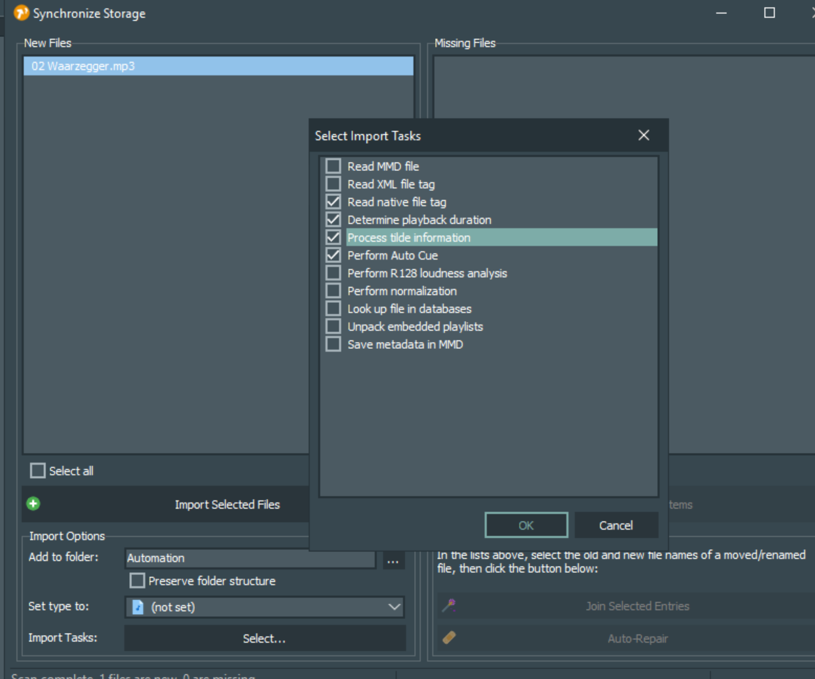 Synchronize - Import Tasks