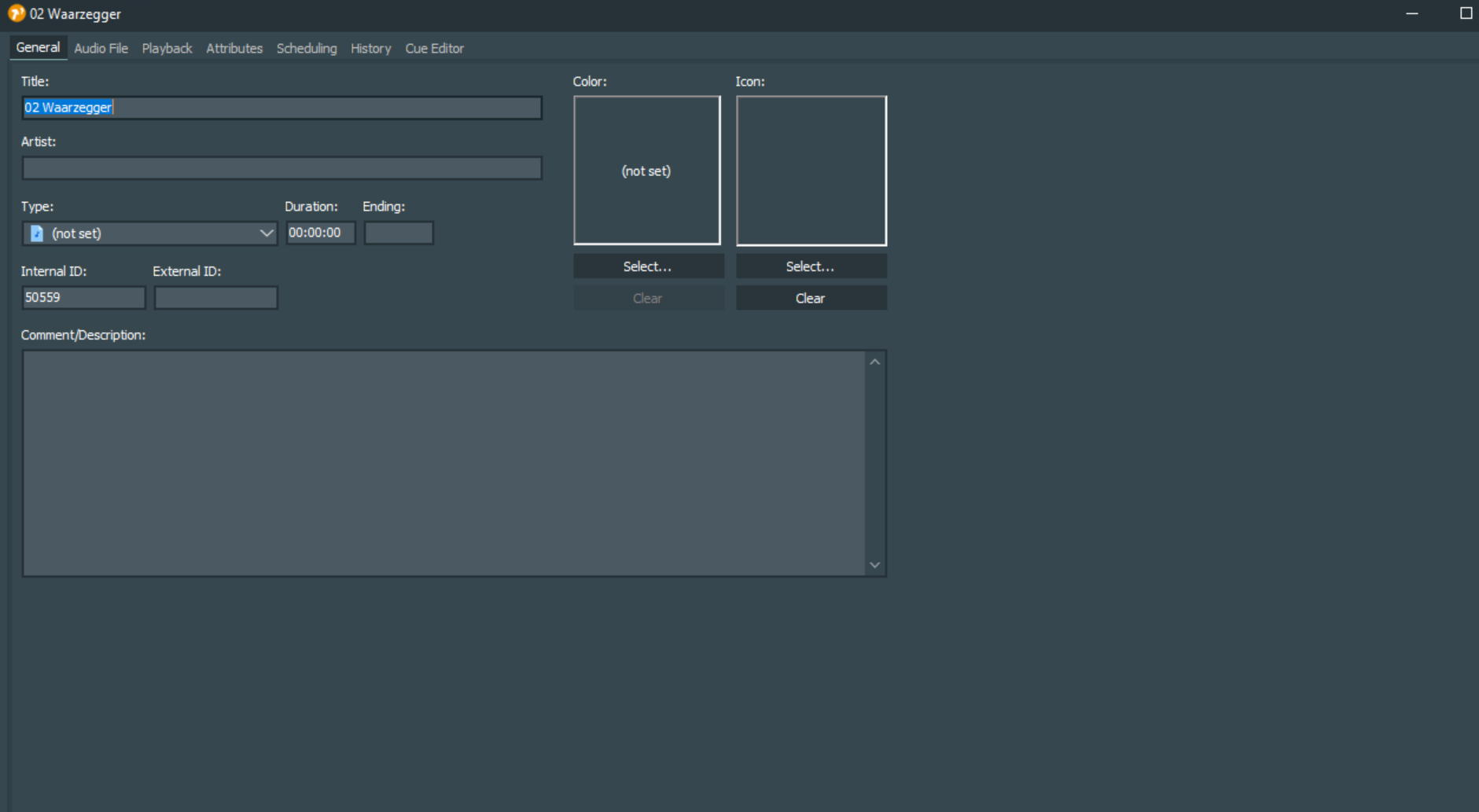 Cue editor for that file shows duration 00:00:00