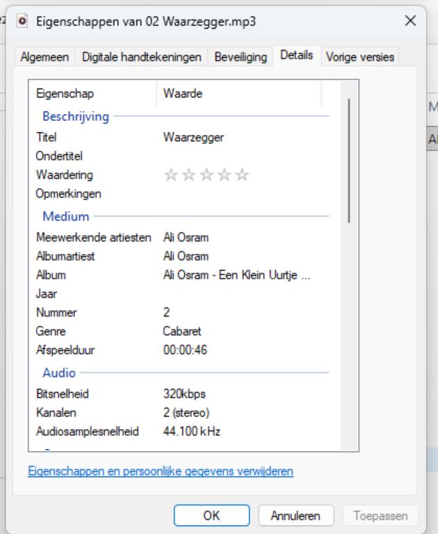 File properties Windows Explorer (duration 00:00:46)