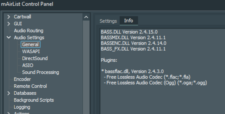 Audio Settings - General - Info