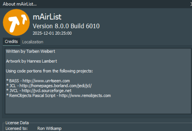 Mairlist v 8.0.0, build 6010