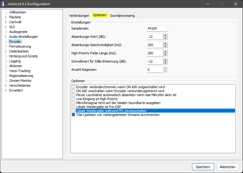 PFL-Objekte können die lokale Wiedergabe stummschalten, wenn du die Option im Encoder setzt.