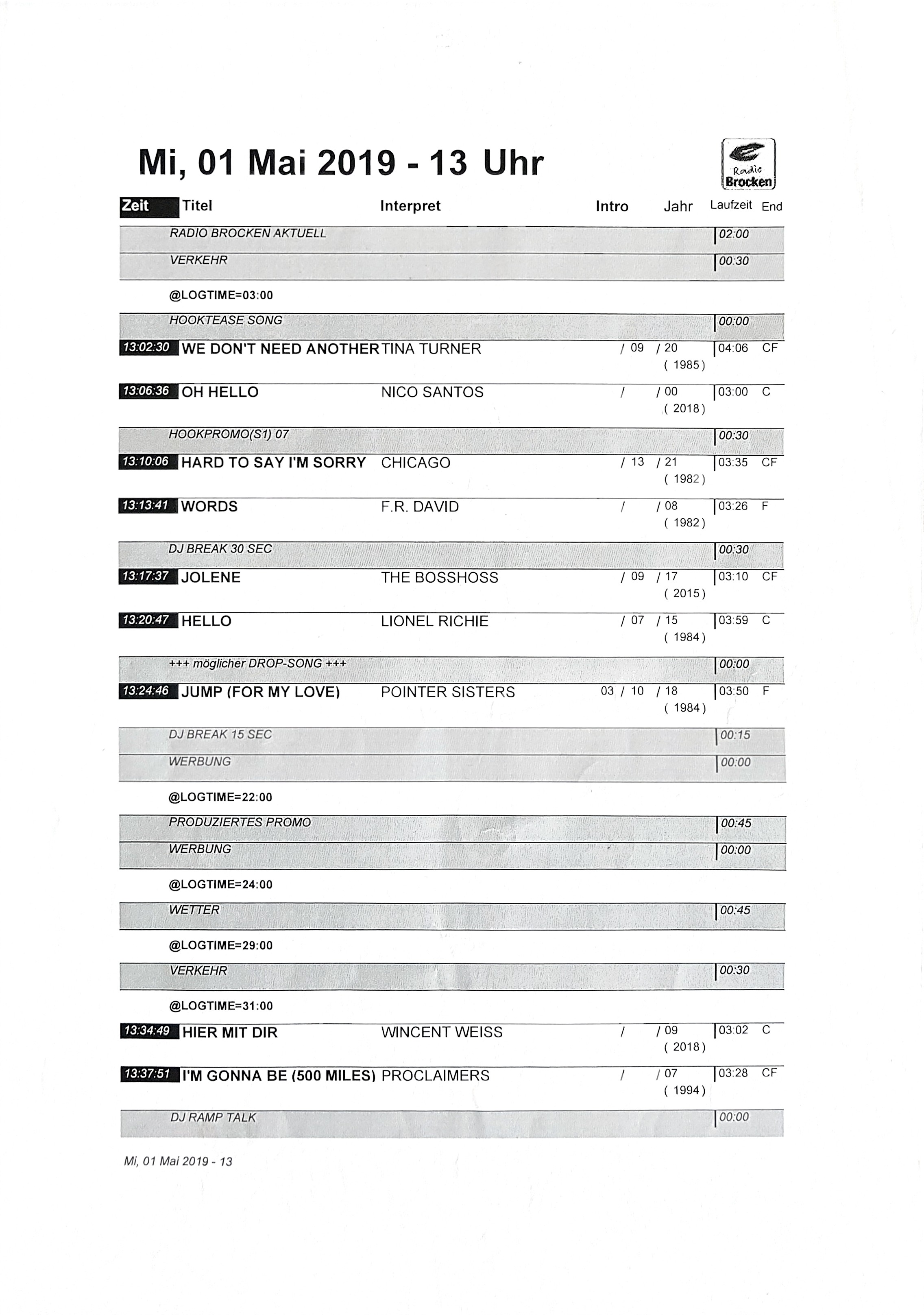 Was ich noch gerne hätte, wäre die Uhrzeit und zumindest das Jahr. Was ich genau meine zeige ich anhand einer Playlist, die von einem Besuch bei einem hier bei uns bekannten kommerziellen privaten UKW Senders bekommen habe.