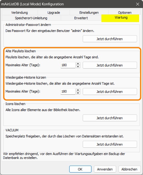 Gibt es eine Möglichkeit, in der Konfig der mAirListDB die Speicherdauer solcher Werte auf “ewig” = keine Löschung einzustellen? An verschiedenen anderen Punkten geht so etwas mit einer gepflegten 0. Spräche aus Performancegründen etwas dagegen?