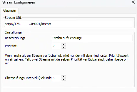 Hi Torben, die Übernahme klappt jetzt…ABER wenn der Client OffAir geht, bleibt der Stream Status auf dem Server bei OnAir. Dadurch wird der Server Stream nicht durchgeschaltet.