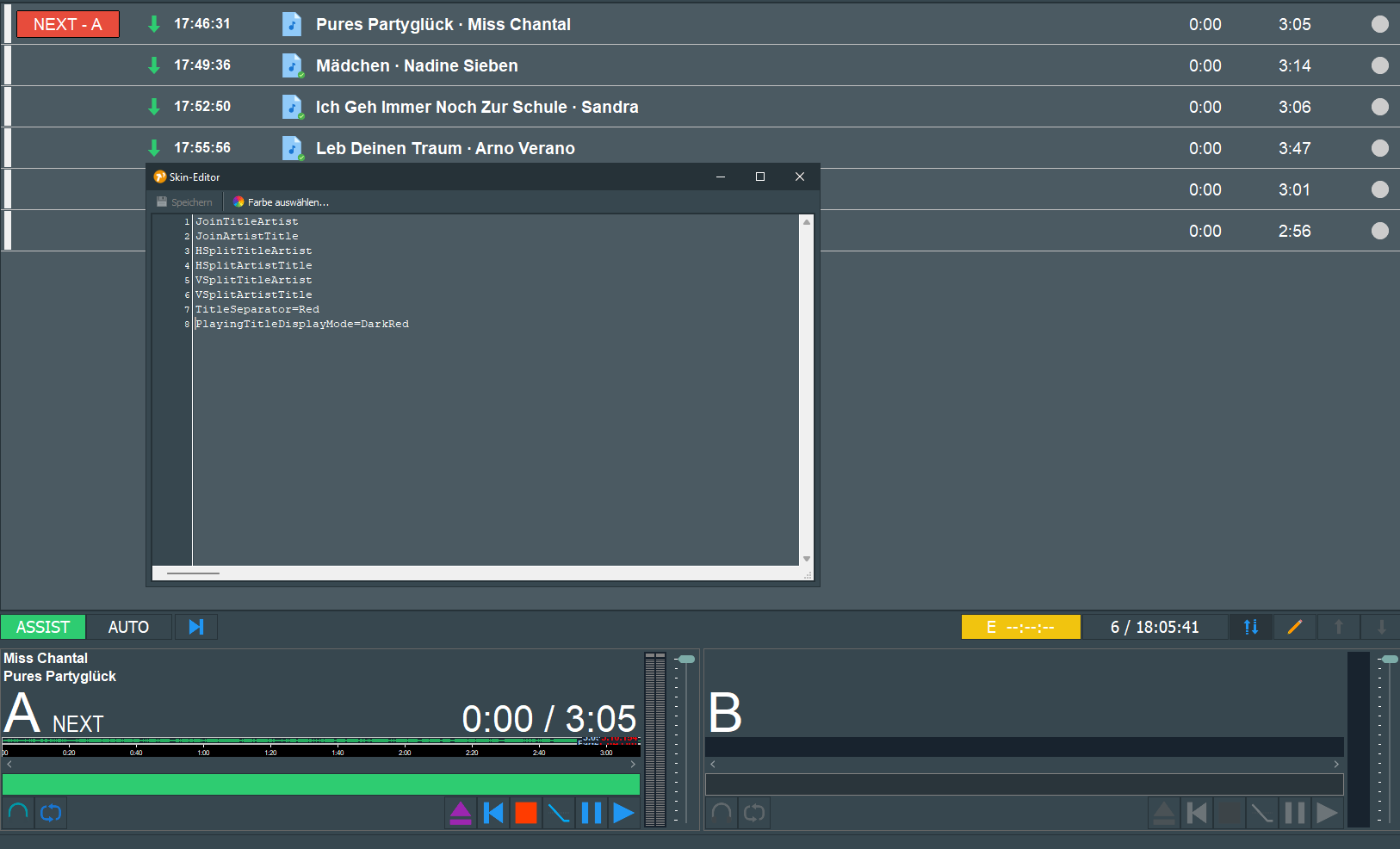 Wie gesagt. Player A und Player B zeigen richtig an nur die Playlist nicht und das sollte eigentlich geändert werden, weil das falsch herum steht. Da müsste es einen Befehl geben, wie mit Player A und Player B, dass man das auch abändern kann. Der Befehl fehlt in der Konfiguration unter Playlist. Nur mal für das nächste mal. Also ein Verbesserungsvorschlag.
