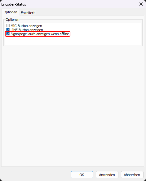 Signalpegel auch anzeigen wenn offline
